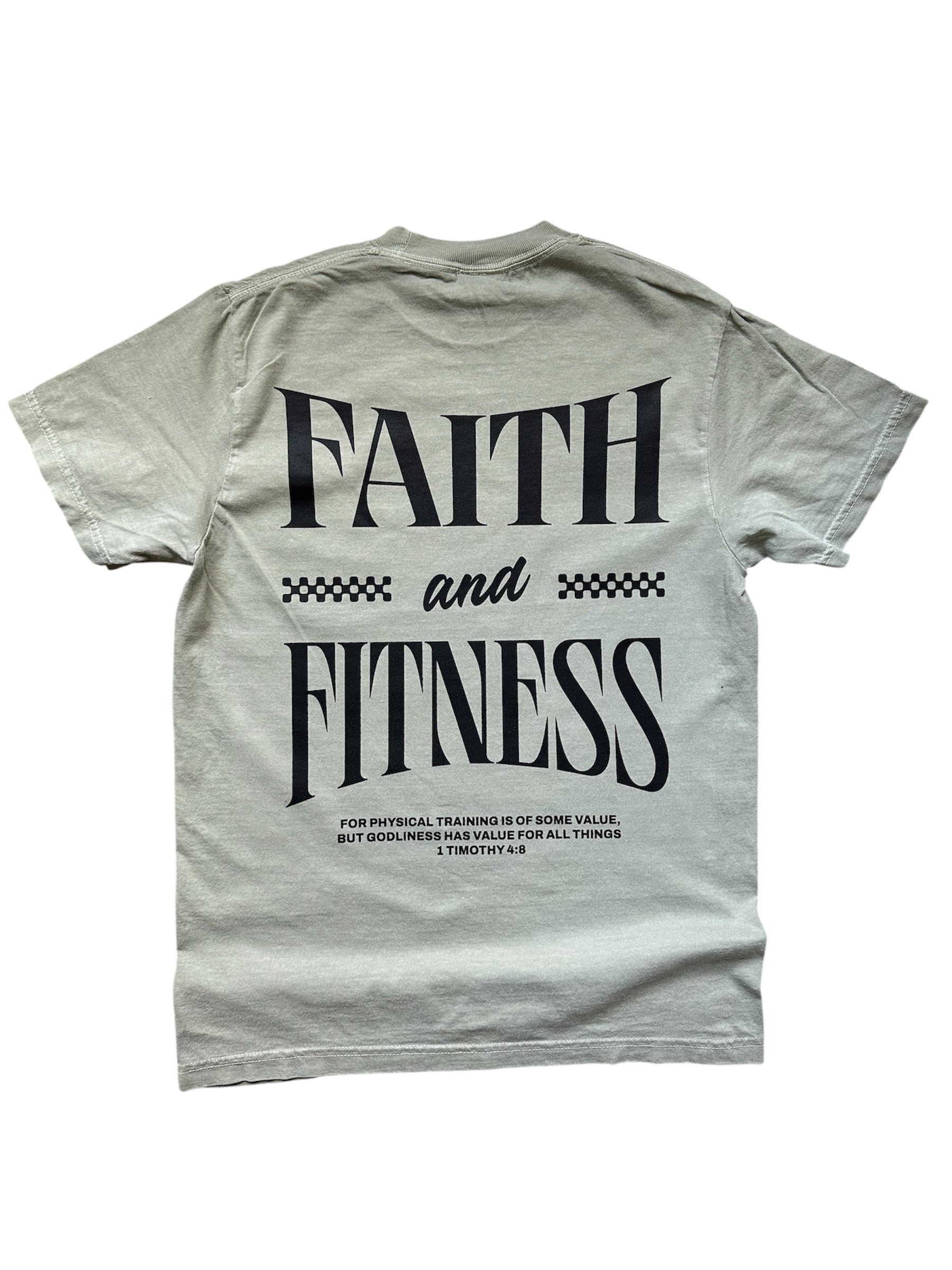 This high-quality Comfort Colors tee features a minimal front design that reads “Eternal Gains” and a bold typography back print that declares “Faith and Fitness” alongside the powerful scripture 1 Timothy 4:8: